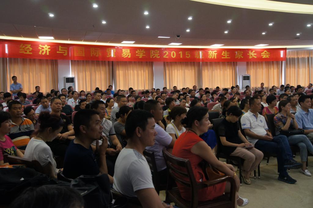 于9月6日下午在学院楼219会议室举行了新生家长会。院长胡亦琴、党总支书记范建锋、副院长柴志贤、党总支副书记叶秀、院长助理王正新、经济系系主任李井奎、国贸系系主任茹玉骢、国民经济管理系系主任张利风、各办公室主任、新生辅导员及2015级近300余位家长参加了会议。