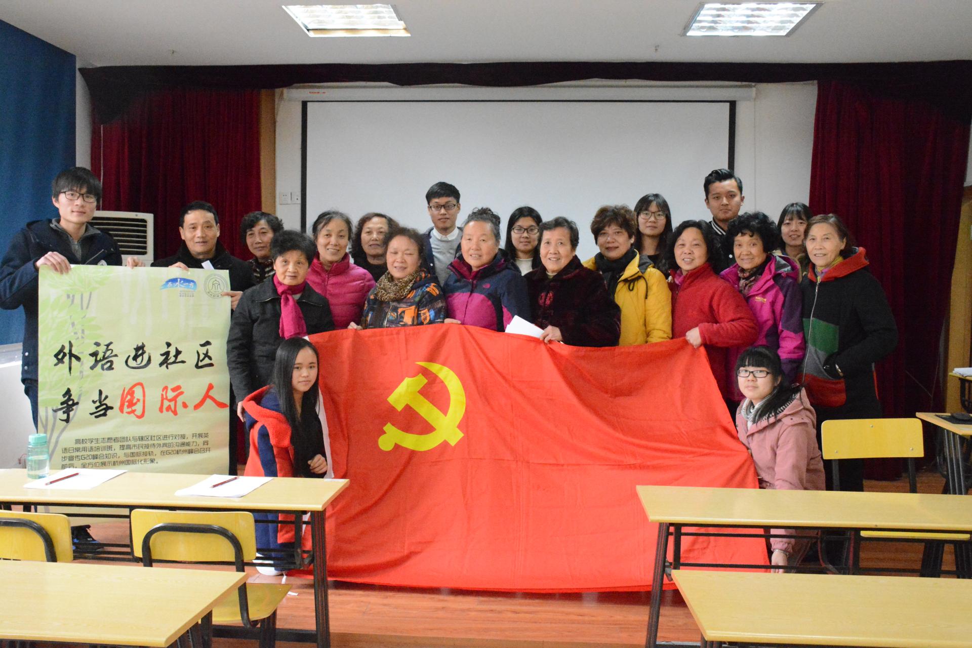 第三党支部和青年志愿者协会组成的志愿者们来到上城区大通桥社区进行日常英语教学。