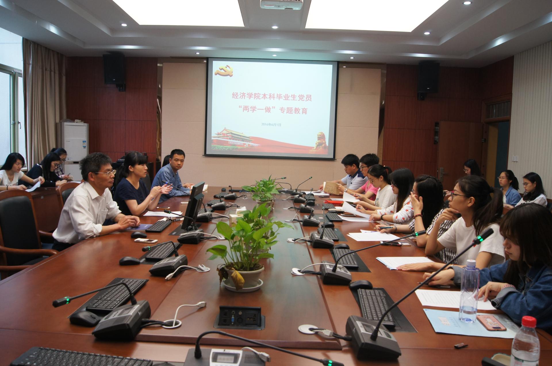 在学院楼210会议室召开了本科毕业生党员“两学一做”专题教育学习会。院党委书记沈水法、学办主任崔泰铭、毕业班辅导员及学院全体本科毕业生党员参加了会议,会议由院党委副书记杨小恩主持。