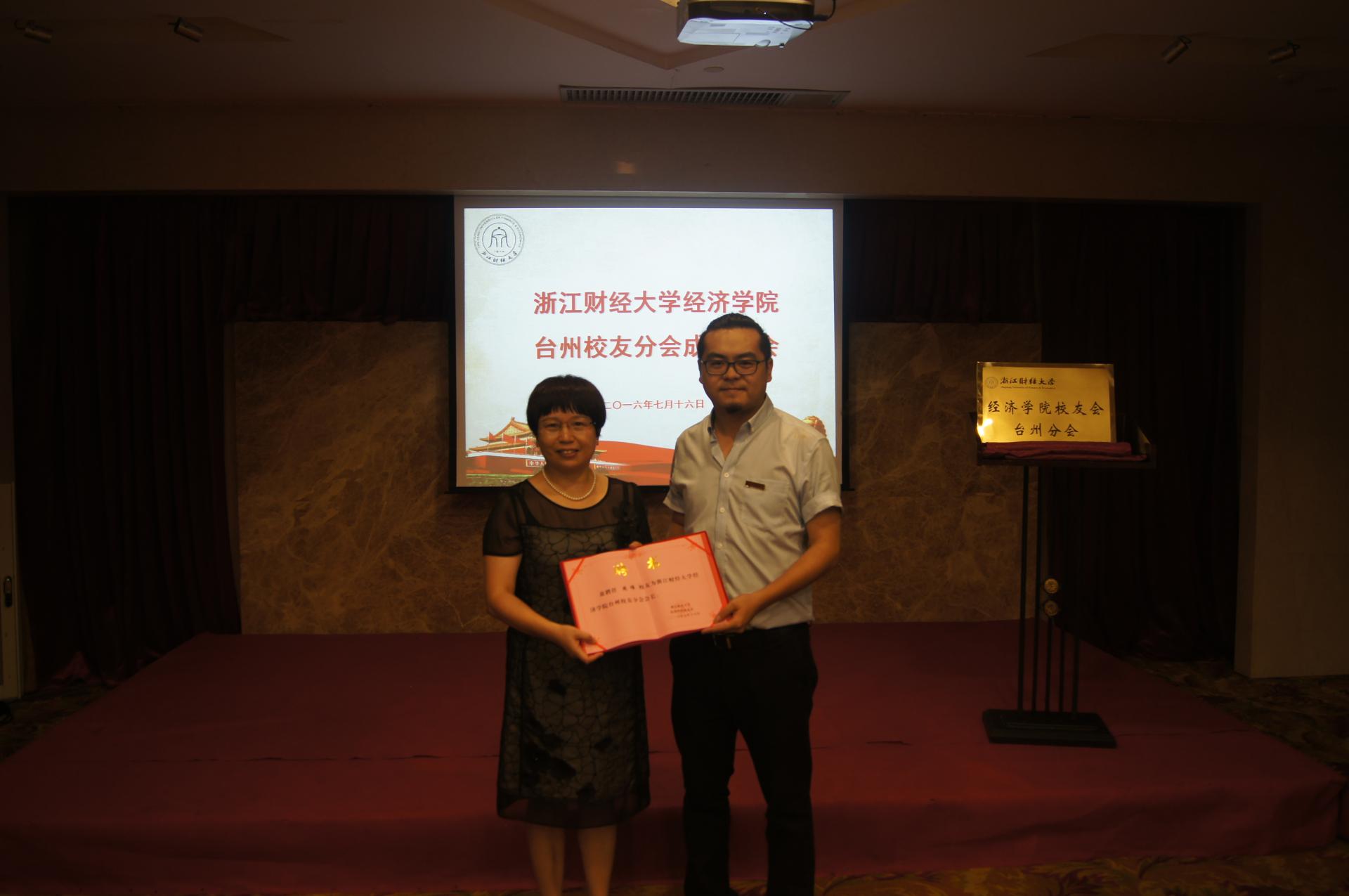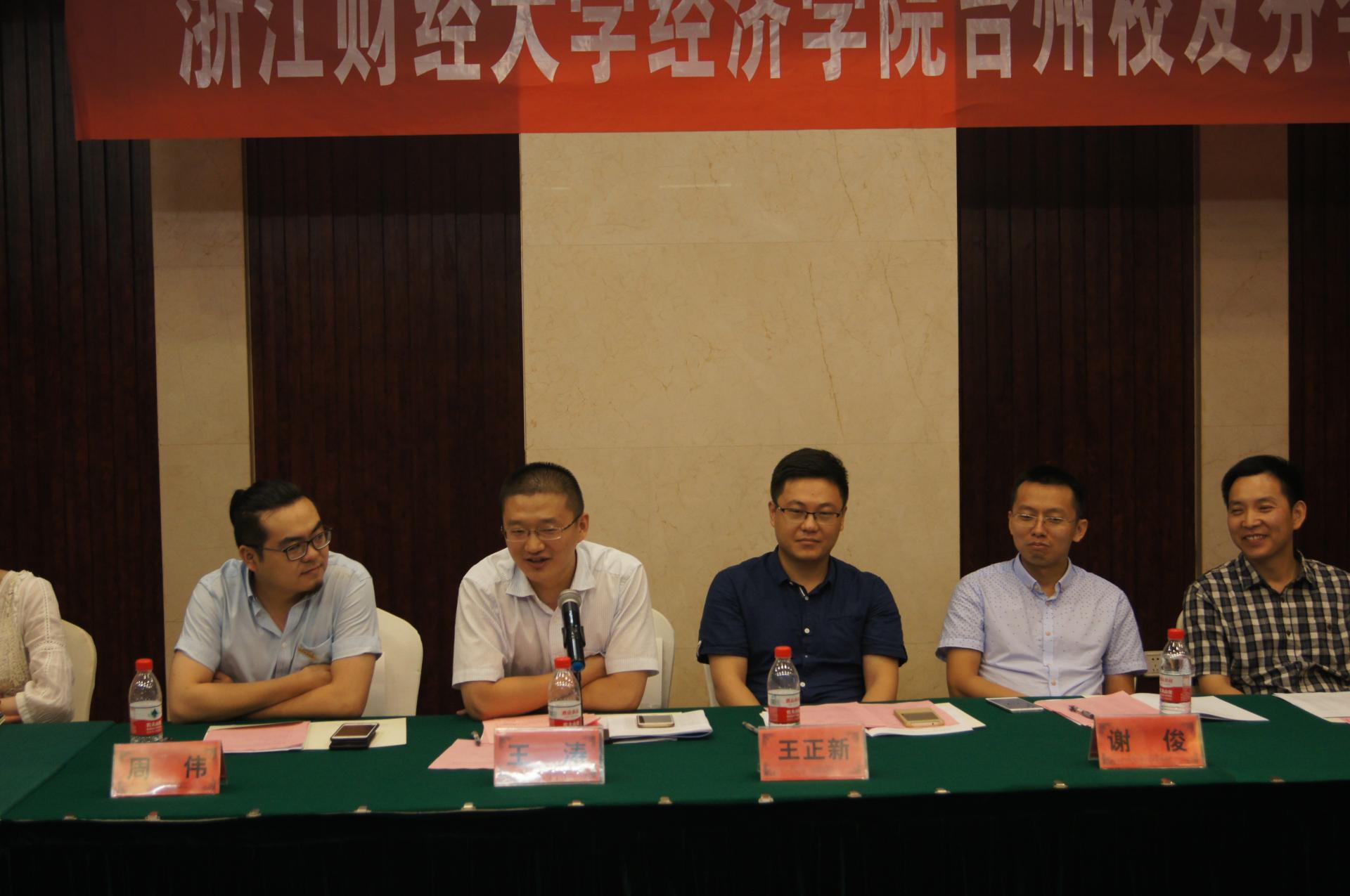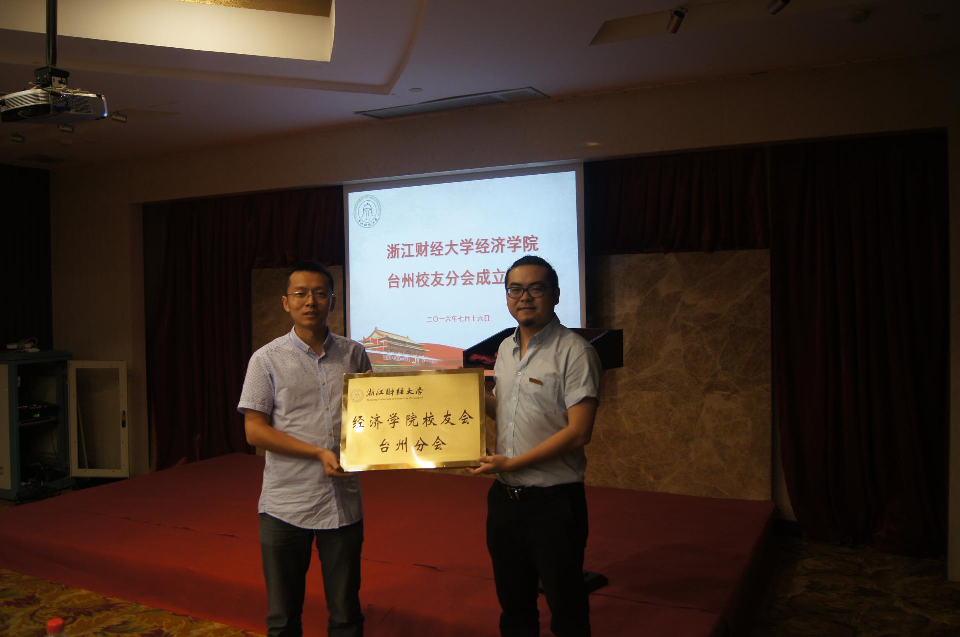 台州校友会秘书长侯俊杰、经济学院校友会副会长王涛致辞,表达了对台州校友分会成立的美好祝愿。