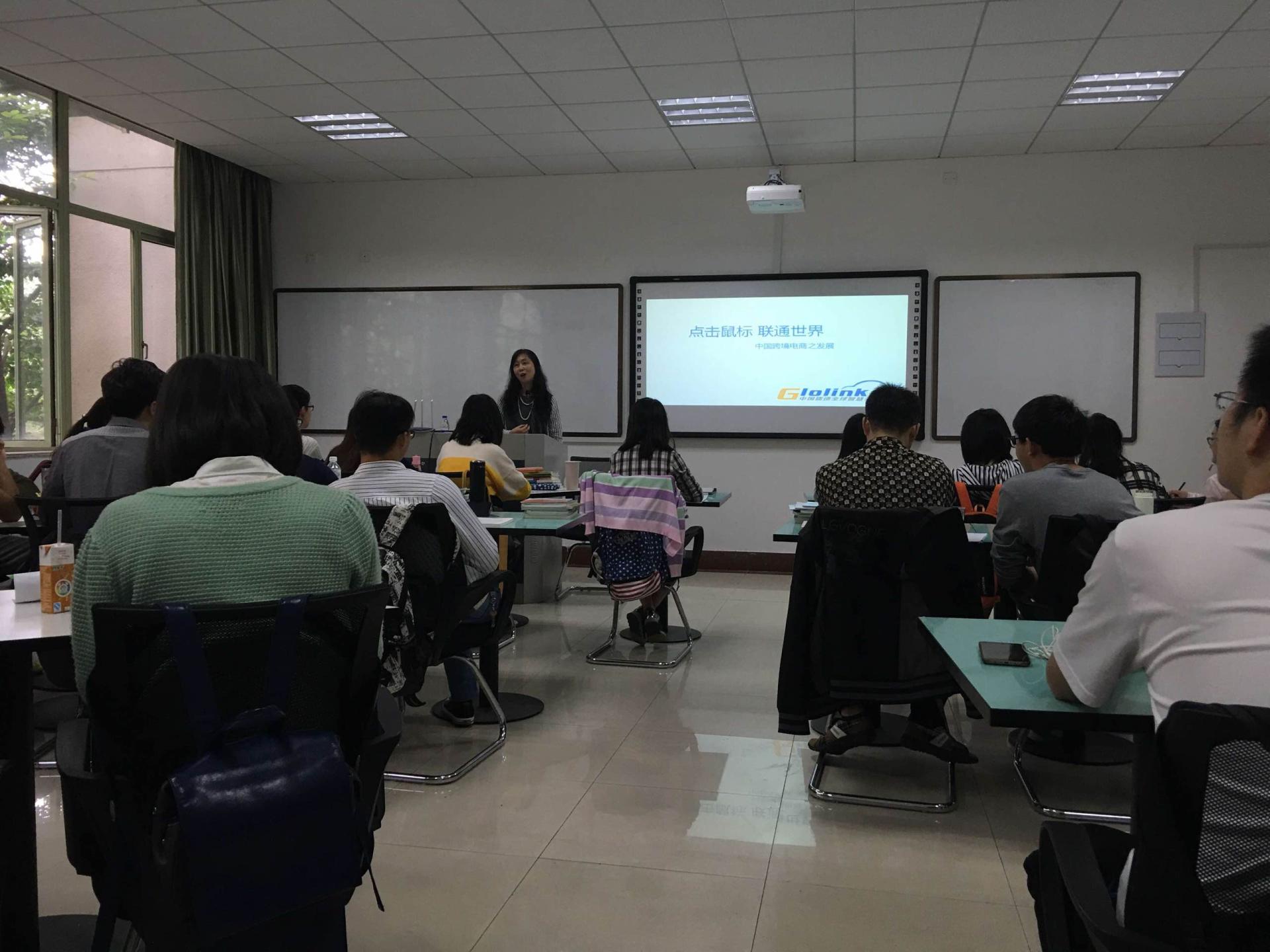 106教室开讲,本次课堂主题是“点击鼠标,联通世界——中国跨境电商之发展”,由GloLinker创始人、中国贸促会跨境电商专家委员会副主任委员、杭州跨境电子商务协会副会长王薇老师主讲,《宏观经济学》(双语)授课老师文雁兵主持。