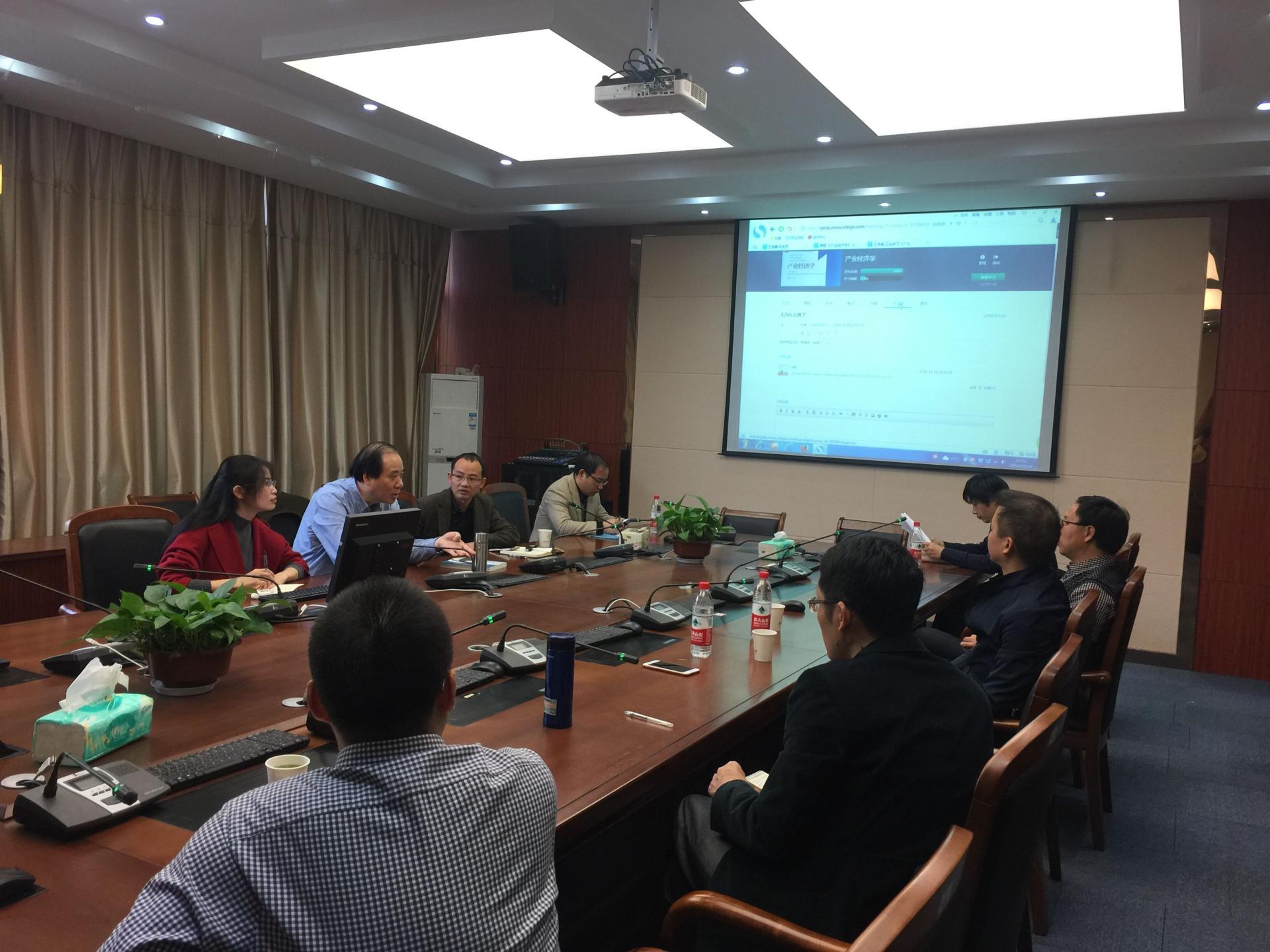 11月18日下午,产业经济学教研室开展了关于《产业经济学》实施在线开放课程教学改革、《产业经济学》教材修订以及《产业经济学》课程实施教考分离制度的研讨活动。此次研讨活动由我校原校长、浙江省特级专家、产业经济学学科带头人王俊豪教授主持,产业经济教研室全体老师围绕相关问题展开热烈讨论。
