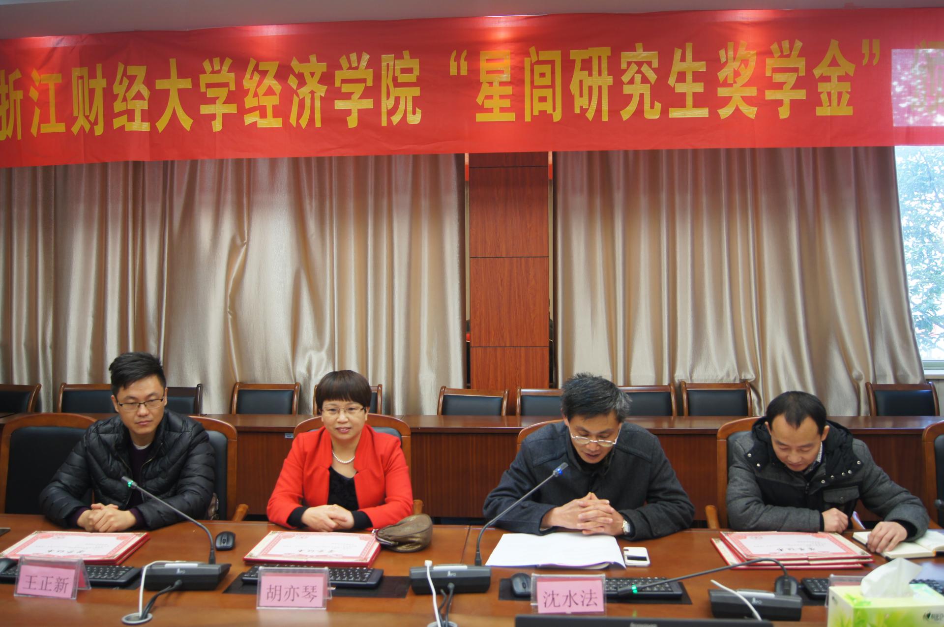 第五届“星闾研究生奖学金”颁奖仪式在210会议室举行,胡亦琴院长、柴志贤副院长、王正新副院长及研究生辅导员陶恩情出席,学院党委书记沈水法老师主持会议。