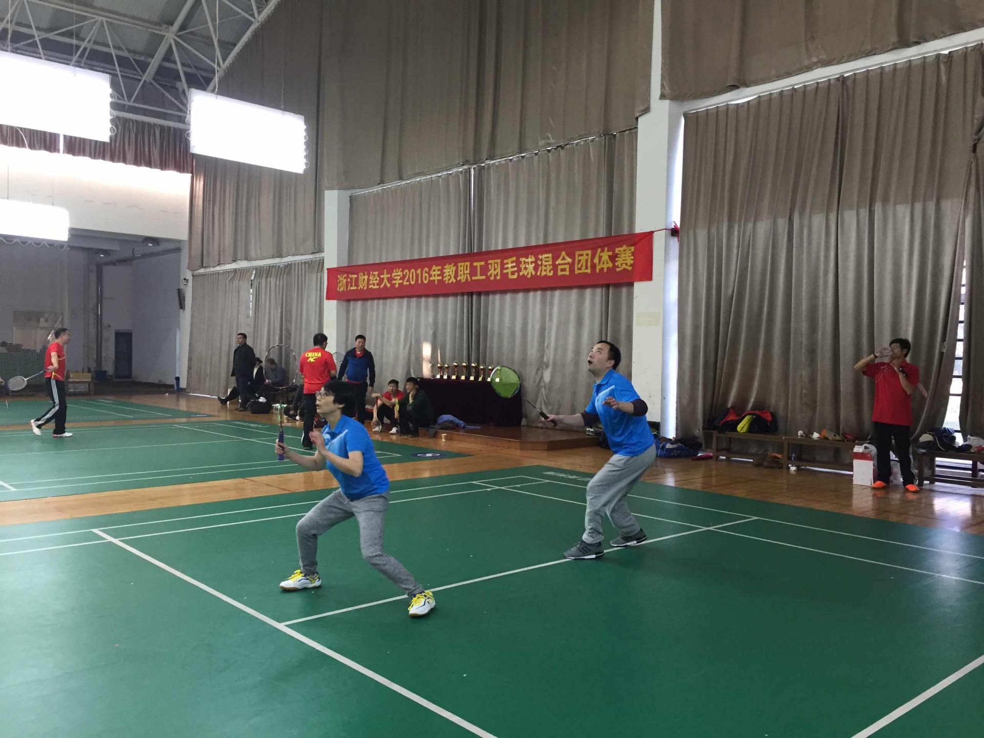 近日,我校2016年教职工羽毛球混合团体赛在东馆举行。本次比赛设有男双(3对)、混双(2对)两个项目,采用五局三胜制,成人直播 由陈刚、邵慰等12名教职工组成的羽毛球队经过激烈角逐,喜获团体第五名的好成绩。
