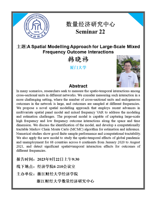 主题:A Spatial Modelling Approach for Large-Scale Mixed Frequency Outcome Interactions