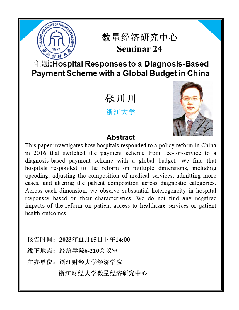 主题: Hospital Responses to a Diagnosis-Based Payment Scheme with a Global Budget in China