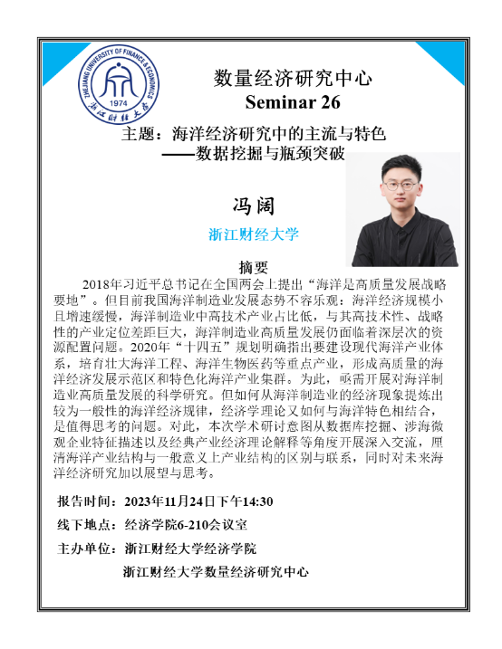 主题:海洋经济研究中的主流与特色