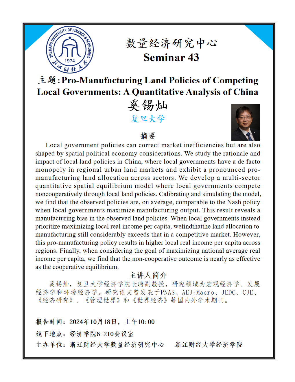 题目:Pro-Manufacturing Land Policies of Competing Local Governments: A Quantitative Analysis of China