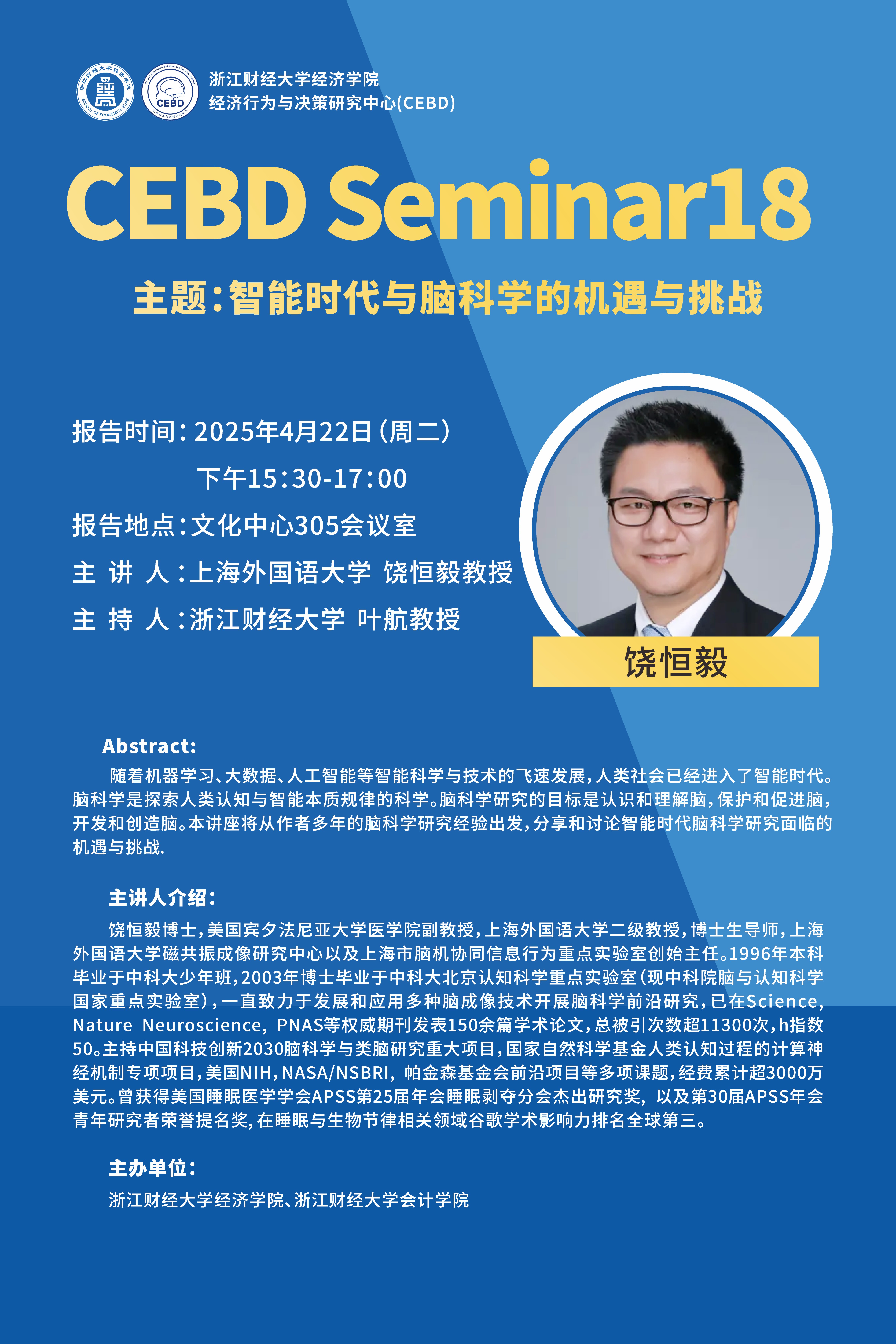 饶恒毅博士,美国宾夕法尼亚大学医学院副教授,上海外国语大学二级教授,博士生导师,上海外国语大学磁共振成像研究中心以及上海市脑机协同信息行为重点实验室创始主任。1996年本科毕业于中科大少年班,2003年博士毕业于中科大北京认知科学重点实验室(现中科院脑与认知科学国家重点实验室),一直致力于发展和应用多种脑成像技术开展脑科学前沿研究,已在Science, Nature Neuroscience, PNAS等权威期刊发表150余篇学术论文,总被引次数超11300次,h指数50。主持中国科技创新2030脑科学与类脑研究重大项目,国家自然科学基金人类认知过程的计算神经机制专项项目,美国NIH,NASA/NSBRI, 帕金森基金会前沿项目等多项课题,经费累计超3000万美元。曾获得美国睡眠医学学会APSS第25届年会睡眠剥夺分会杰出研究奖, 以及第30届APSS年会青年研究者荣誉提名奖, 在睡眠与生物节律相关领域谷歌学术影响力排名全球第三。