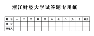 1.任课老师要做好本课程的出题工作,所有课程均需出A、B卷及答案,A、B卷重复不要超过1/3,且与前面三次考核试卷雷同不能超过一半。试卷题量适中,部分题要有一定灵活度,试卷及参考答案统一采用规范表头,标准格式可从学院网站下载中心下载务必注意试卷的保密性,印卷与封卷需领取文印单和封卷通知书。封卷前,请到教学办领取考生签到单、监考须知和违纪情况记录表。封装时注意答题纸的格式,通常封装有得分框的答题专用纸,如图所示: