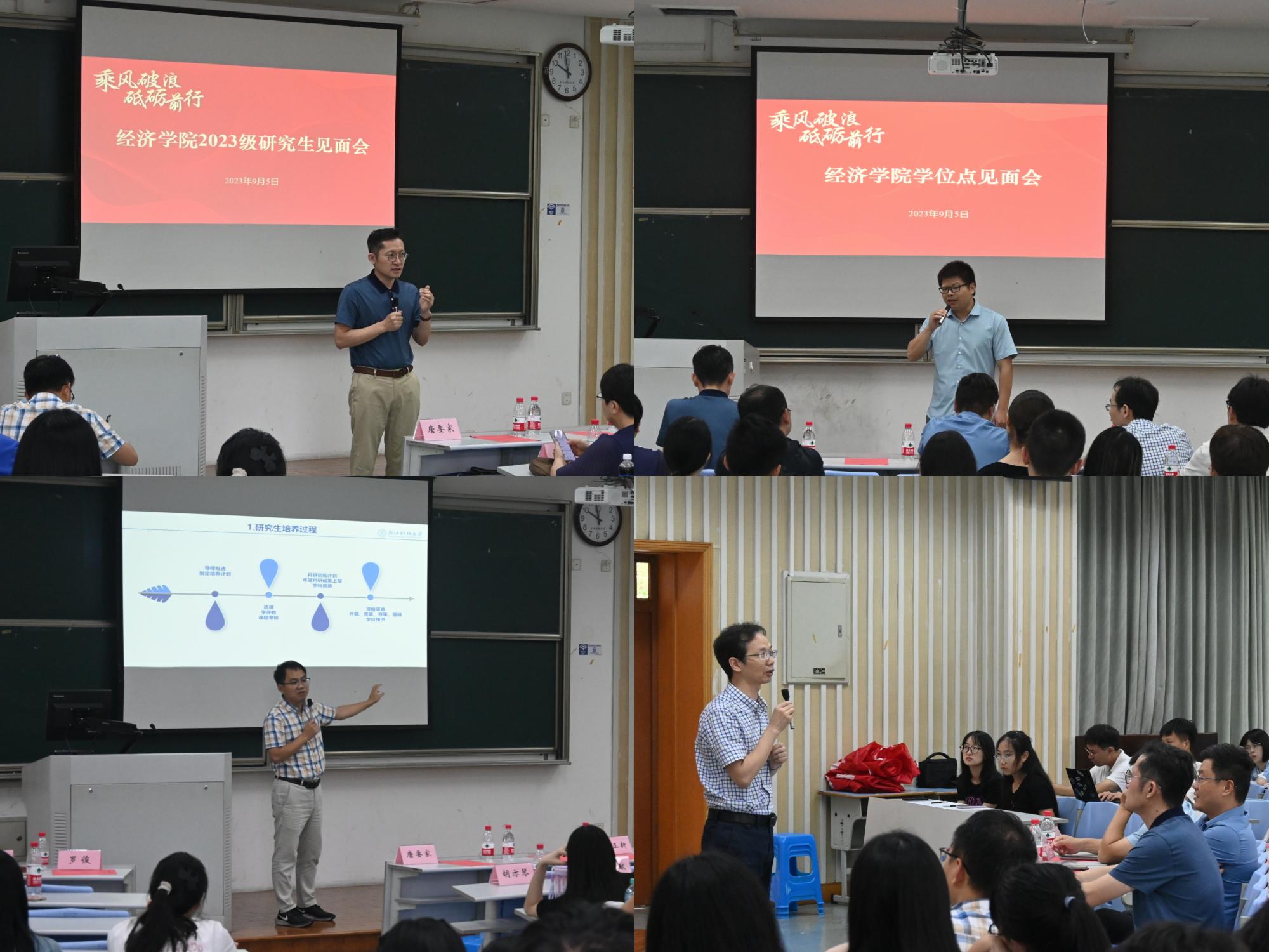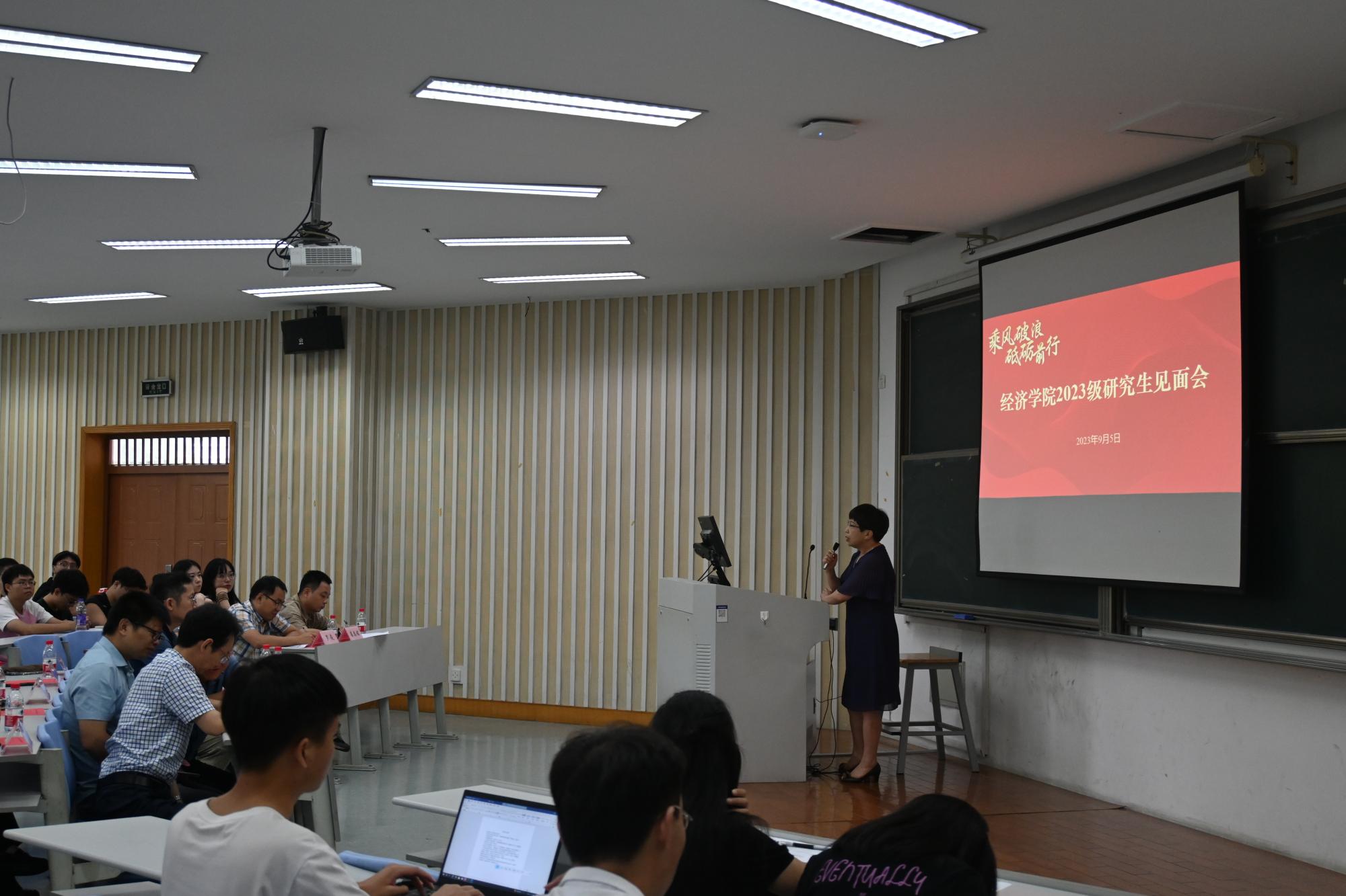 随后,各学位点负责人胡亦琴老师、唐要家老师、王力老师、邓晓军老师、赵卓嘉老师、罗俊老师分别介绍了各学位点发展情况及研究方向,勉励大家知行合一、致知笃行。“书记院长第一课”上,副院长罗俊从诚信教育、学位管理等方面展开,敦促全体研究生在“研精致思”中做到“信守不渝”。党委副书记、纪委书记崔泰铭指出,作为当代大学生,当立足新时代,坚定不移听党话、跟党走,做社会主义核心价值观的坚定信仰者、积极传播者、模范践行者,承担起时代赋予这一代青年人的使命。