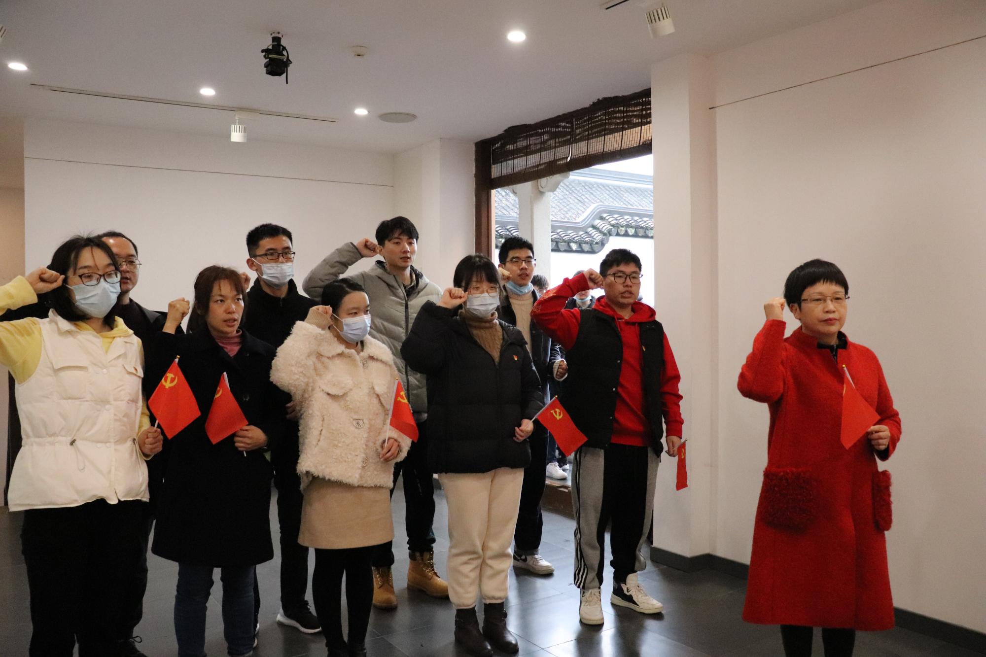 教学活动结束后,学院党委书记胡亦琴带领党员们,在鲜红的党旗下,重温入党誓词。