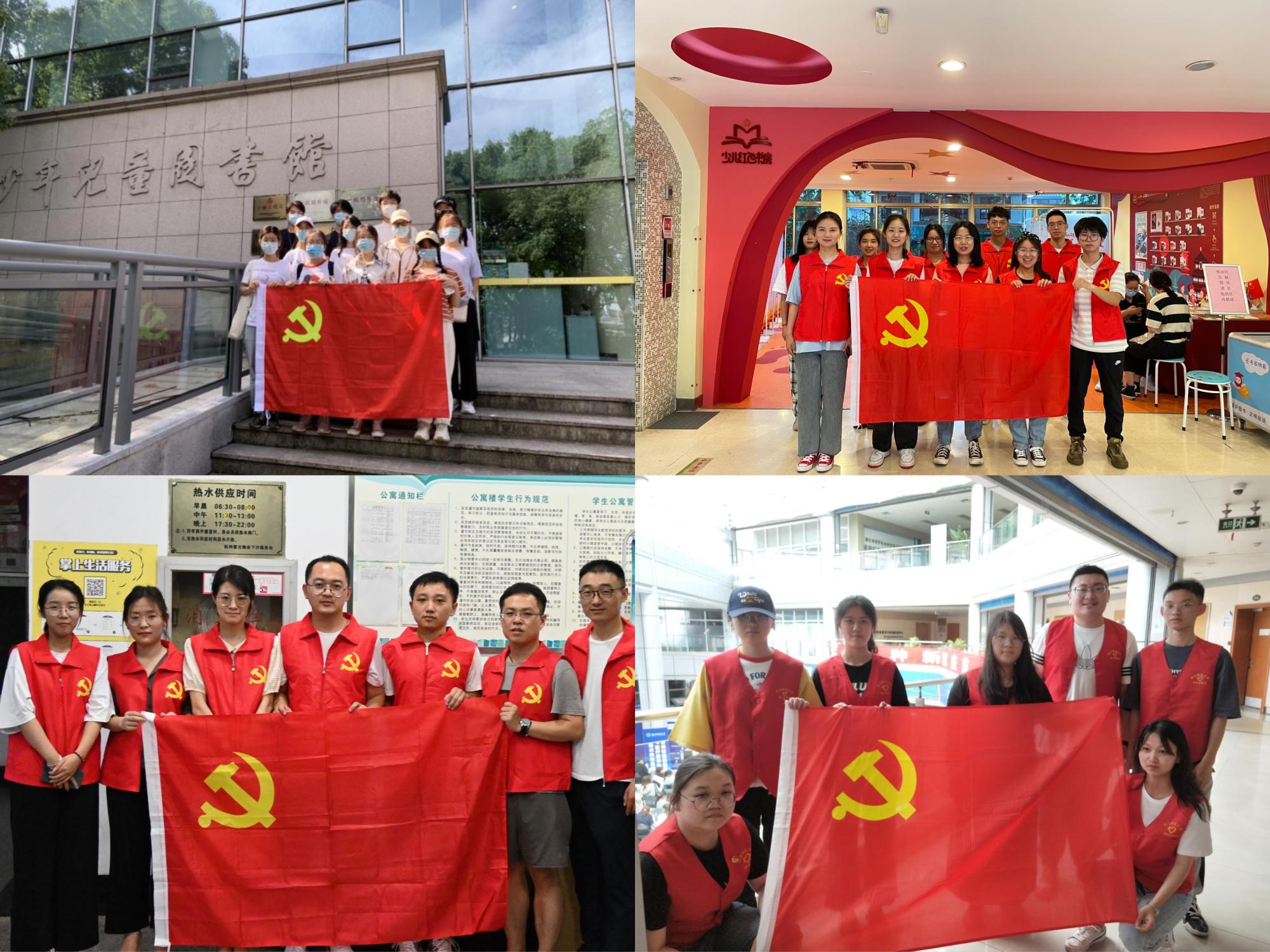 学史力行,以行践知。学院党委组织各支部先后前往古墩印象城、杭州图书馆少儿分馆、千帆联合社区、我校新冠疫苗临时接种点以及生活园区等地开展系列志愿服务,传承非遗文化,助力公共卫生服务与生态保护,为维护校园安全稳定贡献一份力量。参与志愿服务的支部成员们不仅弘扬了“奉献、友爱、互助、进步”的志愿服务精神,还将党史学习成果转化为工作动力和成效,切实为师生、为社会办实事、解难题,用实际行动彰显党员本色。