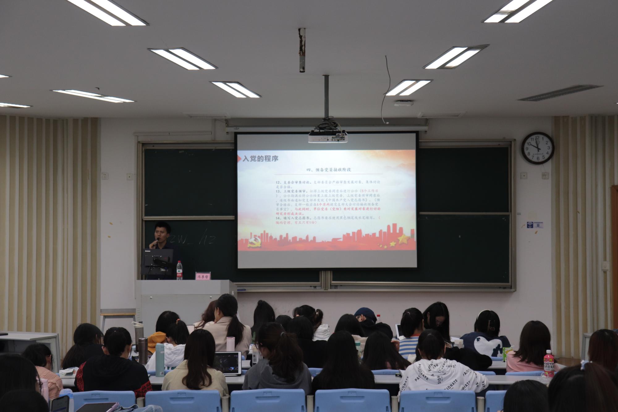 党委副书记崔泰铭、学办主任李伶俐、辅导员韦罗成、财税学院组织员胡卓文、信智学院组织员冯李哲为大家授课。老师们分别从党员发展流程规范、党员的初心和使命、党史、解读十九大精神等方面进行讲授,希望同学们能够端正入党动机、坚定理想信念,用党员的标准严格要求自己。在红色观影课程中,《1921》和《八佰》带着入党申请人们回顾了那段艰苦奋斗的岁月,感受老一辈共产党人用生命谱写的精神图谱,接受了一场生动的党性教育和思想洗礼。