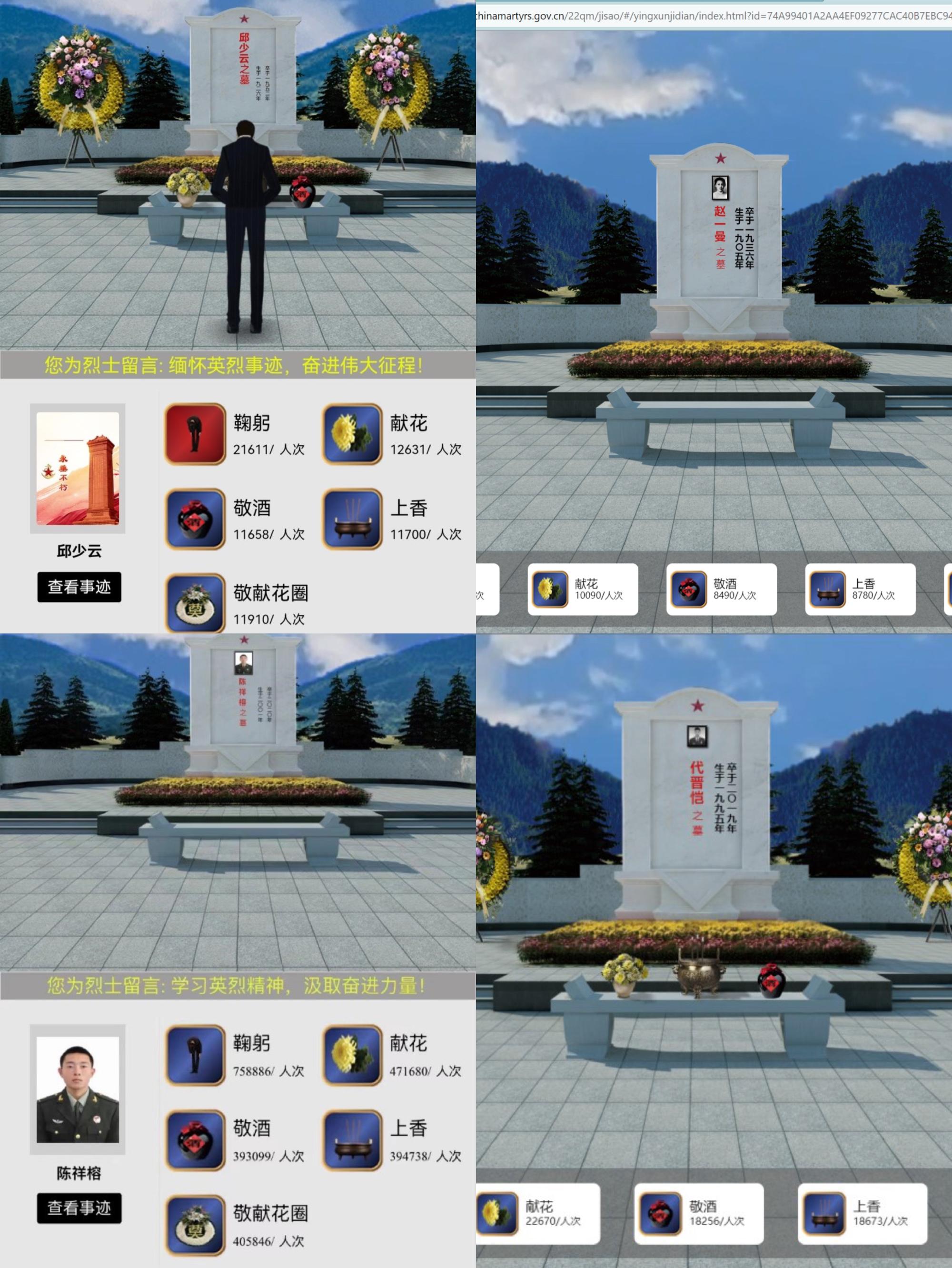 云祭英烈,共寄哀思。学院组织开展云祭扫活动,学生登录“中华英烈网”,进入“纪念祭扫”板块,怀着崇敬的心情了解革命先烈的生平事迹,感受英烈们保家卫国、英勇献身的大义精神,向他们致敬、献花,发表感言寄语,表达哀思。网站内展示的厚重史料引导广大学子牢记历史,赓续红色基因。