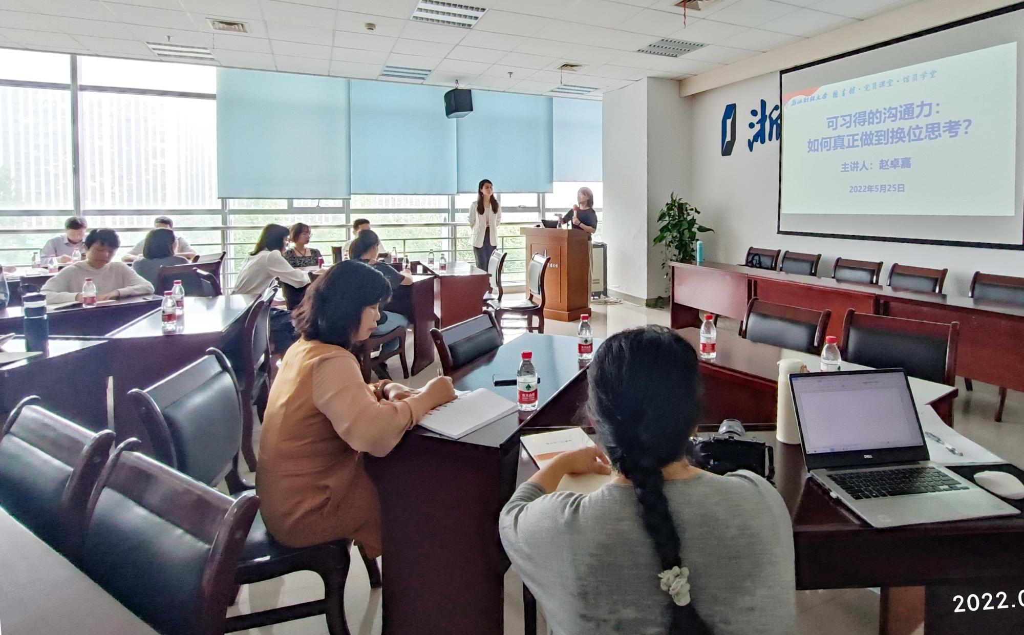 教工第二党支部书记赵卓嘉老师以《可习得的沟通力:如何真正做到换位思考》为题,通过情景模拟、互动分享、案例分析等方式,就沟通能力、沟通状态、情绪表达、应对措施等方面进行了详细的讲述,引导党员们沉浸式体验沟通的艺术。大家纷纷表示,今后会进一步提高沟通水平,坚持学用结合,在沟通中多换位思考,真正实现有效沟通。