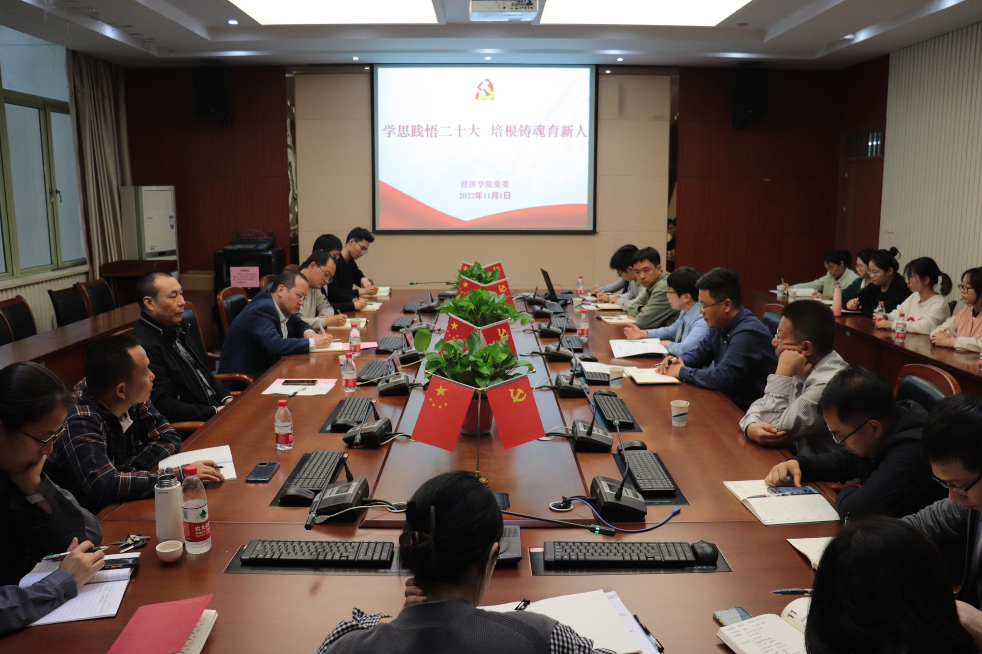 胡亦琴就学院下一步深入学习宣传贯彻落实党的二十大精神的方案进行了汇报。她表示,将通过多形式多载体,有重点、分步骤、多层次精心组织学习宣传贯彻活动,扎实推进党的二十大精神在学院落地生根、开花结果,用党的创新理论铸魂育人。院长王正新结合学院中心工作,就如何把大会精神落实到人才培养、科学研究、学科专业建设等工作进行了分享;与会其他老师交流了学习体会。