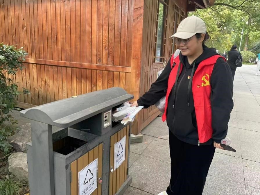 践行二十大,绿色我先行。党员老师化身志愿者沿着西湖行进,清扫在路边、草地里的垃圾,并积极劝导市民朋友们文明游园,以实际行动践行习近平总书记在党的二十大报告提出的“要推动绿色发展,促进人与自然和谐共生”的思想。