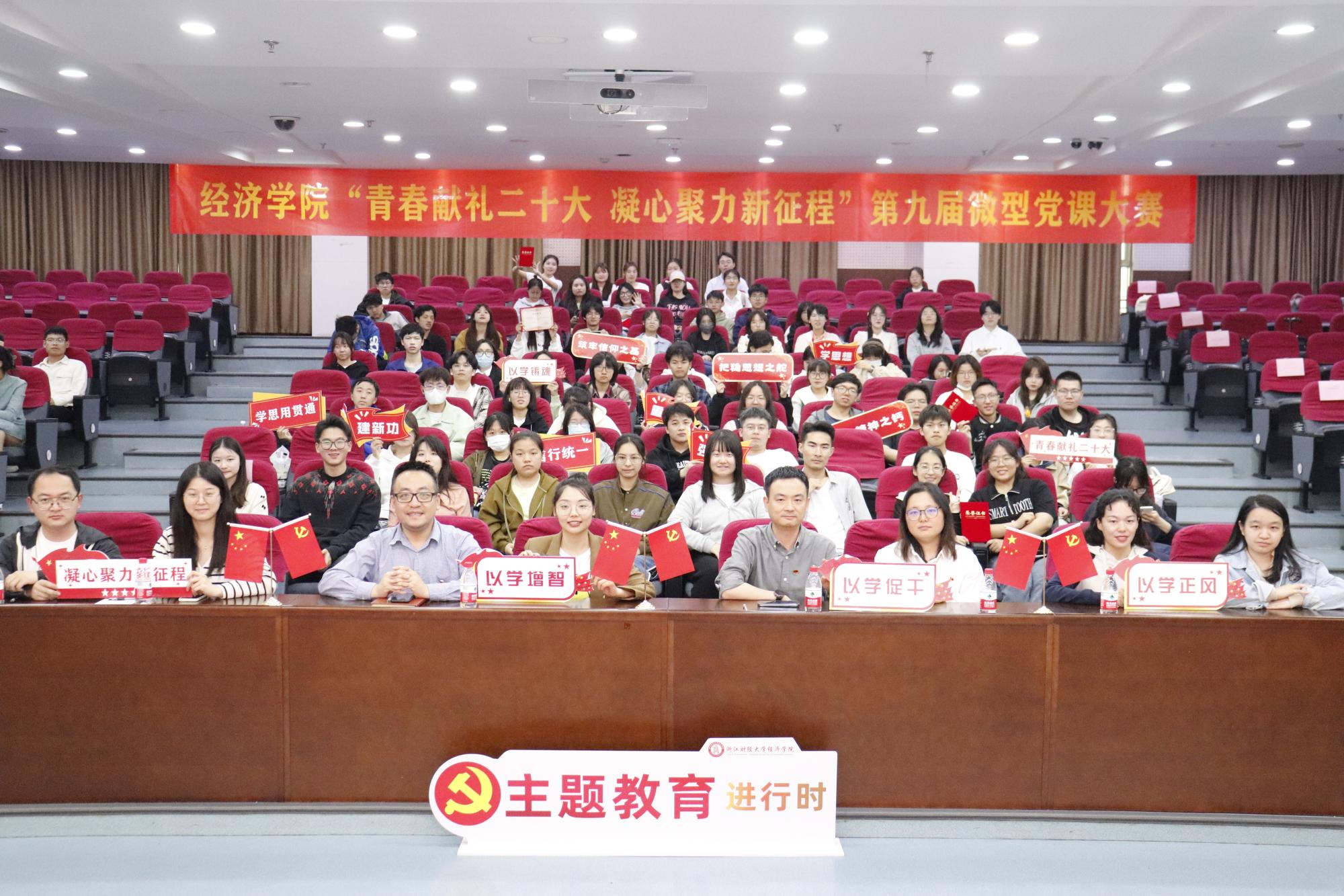 恰风华正茂时,迈砥砺前行路。本次微型党课大赛通过以赛促学、以学促行的方式,推动贯彻落实党的二十大精神、学习贯彻习近平新时代中国特色社会主义思想主题教育不断往深里走、往实里走、往心里走,激励经院学子自觉将“小我”融入“大我”,用坚定的理想信念和使命担当,为实现中华民族伟大复兴的中国梦贡献力量。
