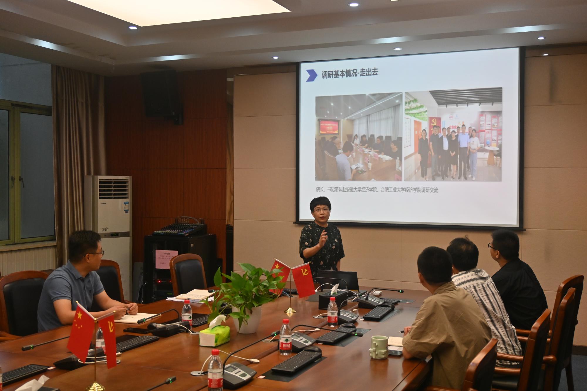 主题教育开展以来,学院班子成员认真践行“深、实、细、准、效”调研五字诀,坚持问题导向、目标导向和结果导向相统一,精准选题、深入调研,形成了两项调研成果。胡亦琴围绕“‘党建+’视角下高校教工党支部党建与业务共融同促路径探究”调研主题,王正新围绕“理论经济学一级学科博士点培育的难点、突破口与路径”调研主题分别进行了调研成果交流发言,总结了调研基本情况,深入剖析了学院发展现状和面临的问题,提出了解决问题的思路和举措。