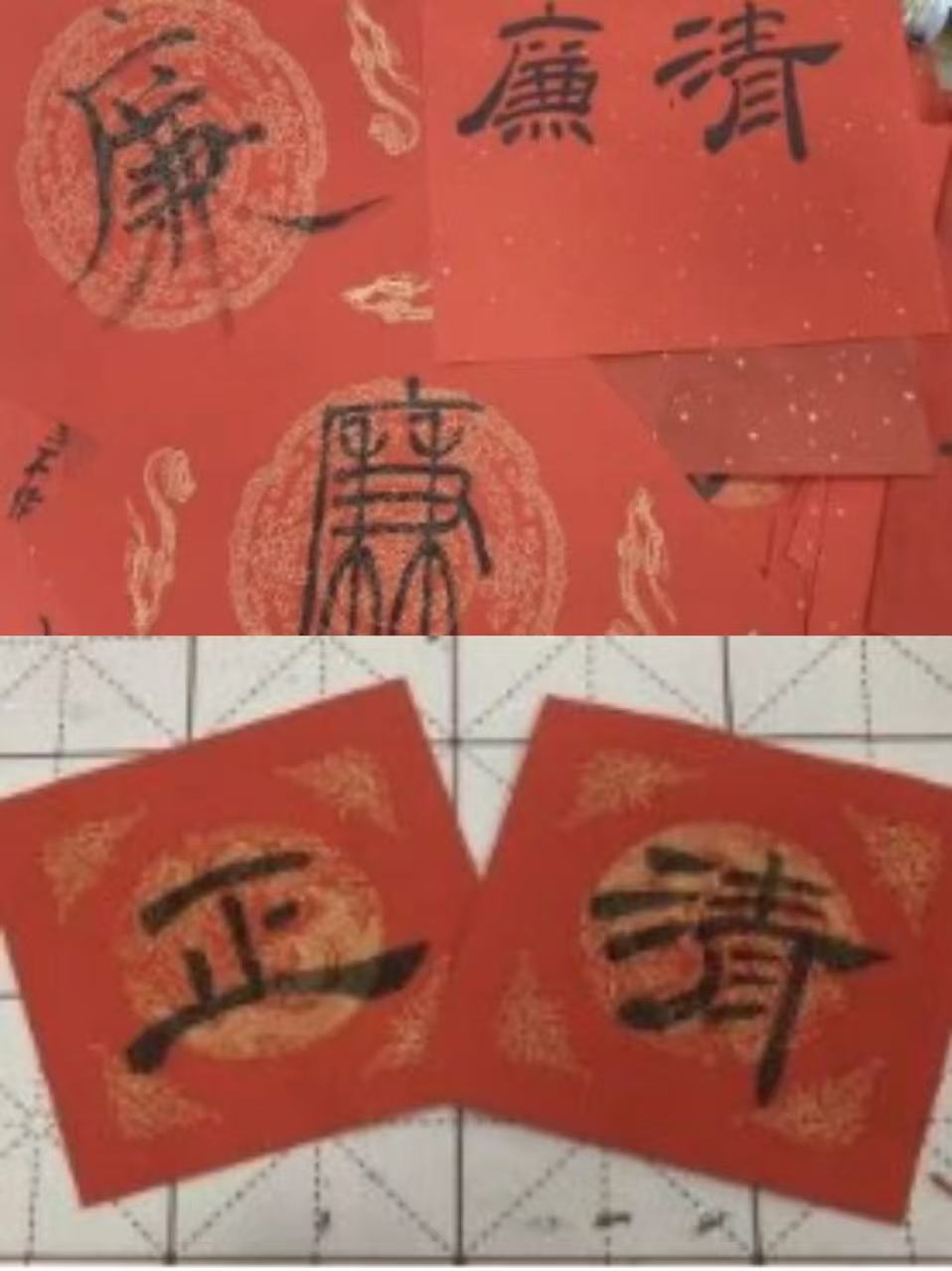 活动现场,老师们挥毫泼墨。或苍劲有力,或行云流水,每一笔每一划,不仅展现了深厚的书法功底,更传递出为人师表者对“清廉自守”品格的追求与坚守。宣纸之上,既有对 “清风两袖朝天去,免得闾阎话短长”等经典廉洁诗词的临摹,也有结合自身感悟创作的心得短句。在一撇一捺间加深对廉洁文化的理解,将“正心明道”的初心内化于心。完成作品后,老师们积极通过朋友圈分享自己的“廉意”之作,将廉洁清风从线下活动延伸到网络空间,共同承诺以实际行动守护校园的清风正气。