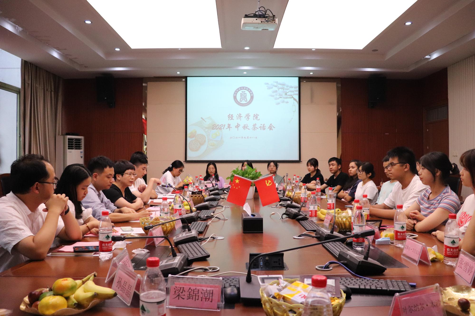 2021年中秋茶话会于学院楼210会议室圆满举办。学院党委书记胡亦琴、党委副书记崔泰铭、团委书记曹仲晔、辅导员韦罗成、邓斯怡、俞一献、陈秋涵,以及2021级新生代表共聚一堂,庆祝佳节。
