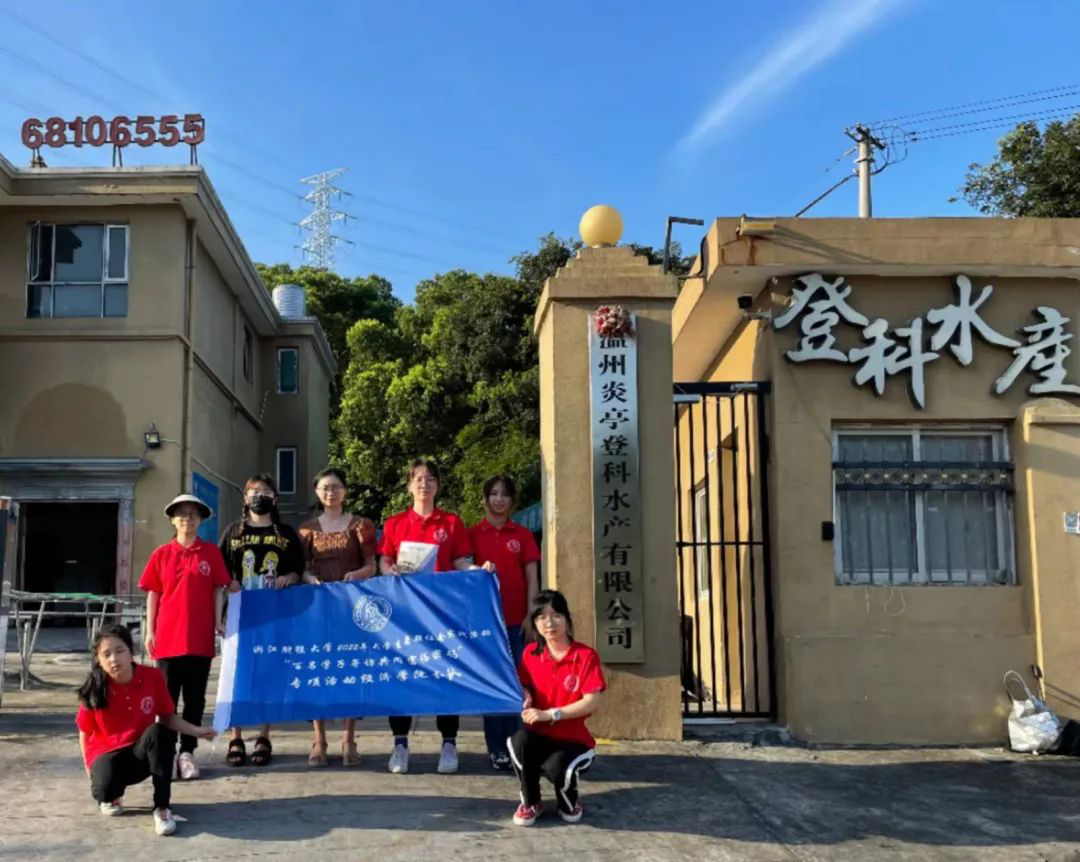 赴炎亭“数字赋能中国梭子蟹之乡金名片”暑期实践服务团深入温州炎亭登科水产有限公司进行实地调查研究。