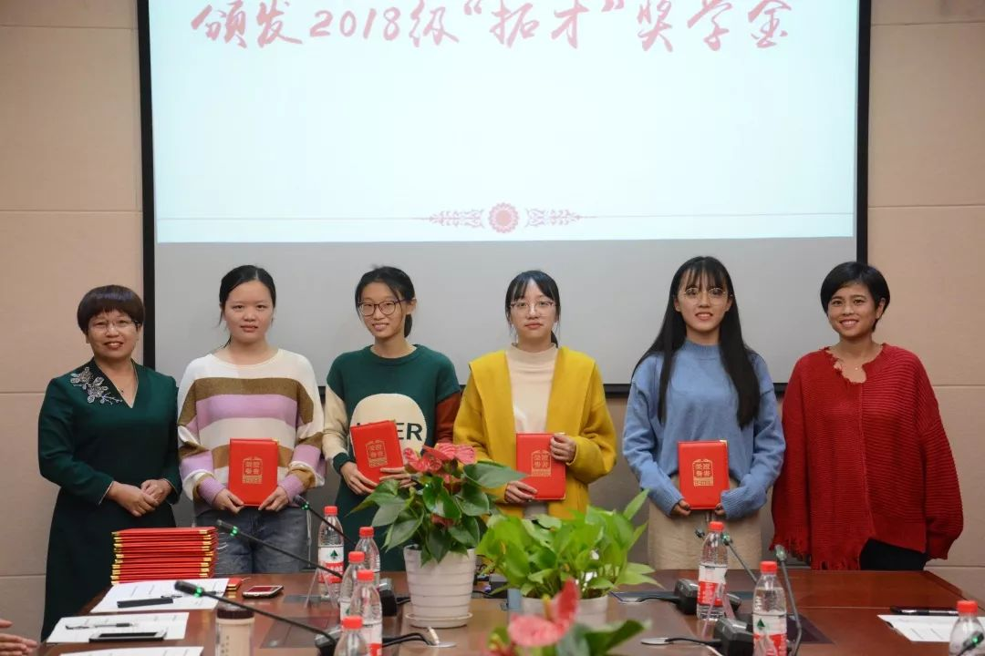 随后,胡亦琴院长和倪富英学姐颁发“拓才”奖学金证书,并向获奖同学表达了祝贺与鼓励。