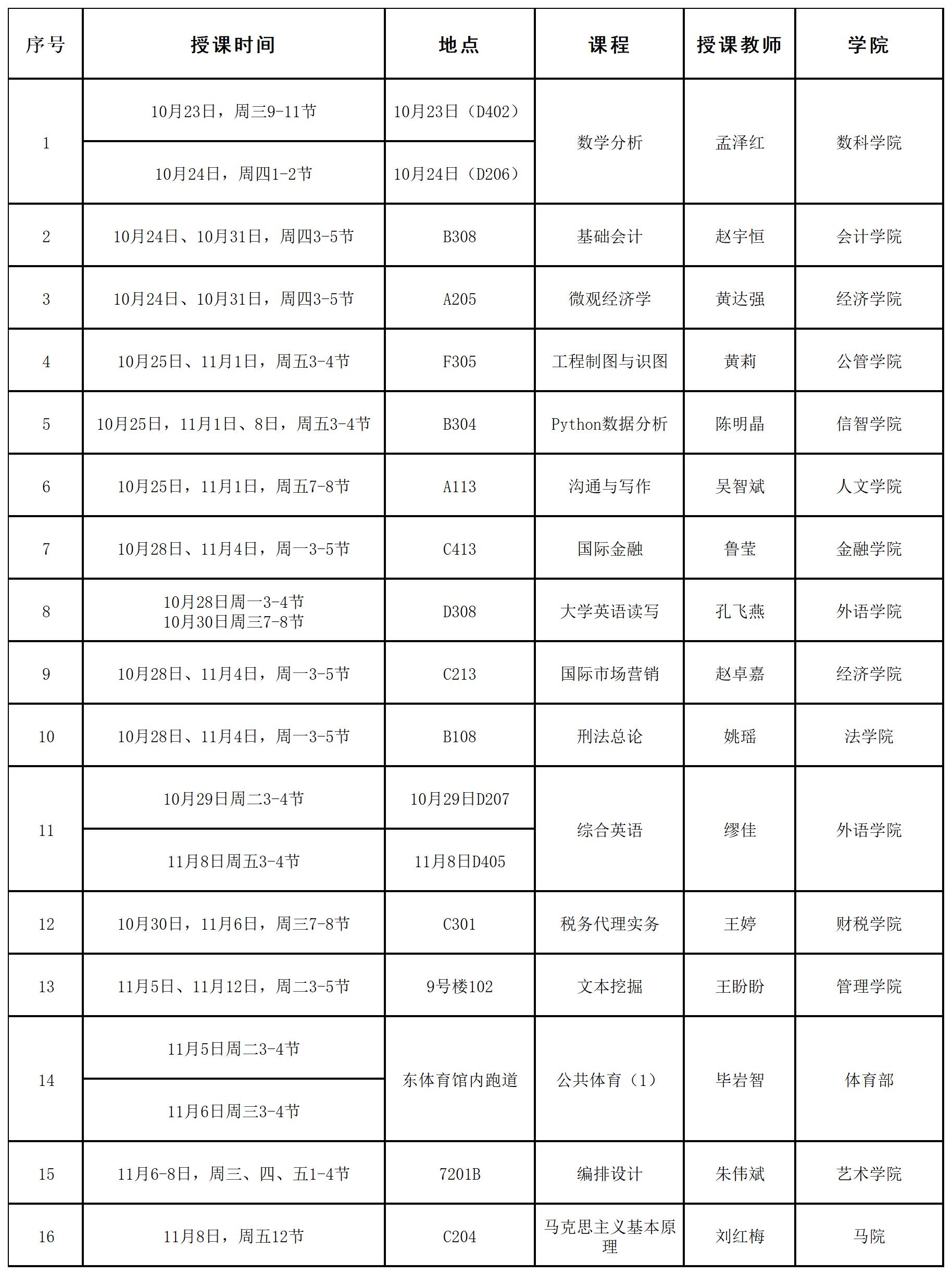 为充分发挥我校“金师”“金课”的引领示范作用,促进课堂教学技能的相互学习、交流和借鉴,进一步提升课堂教学水平和教学效果,学校在10月23日-11月8日期间,组织一批课堂教学水平师生认可度高的教师开展公开课教学观摩活动,为迎接教育部本科教育教学审核评估和学校50周年校庆献礼。有关事项通知如下: