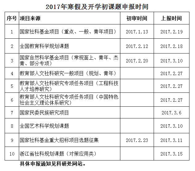 关于2017年寒假及开学初课题申报时间的通知