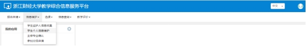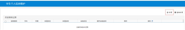 在“学生个人信息维护”中点击右上方“申请”,填写相关内容并提交,修改内容立即生效。